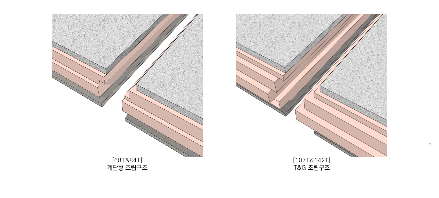 단열재 상하좌우 계단형 및 혀홈(T&G)구조 적용을 통한 단열재간 유기적 결합